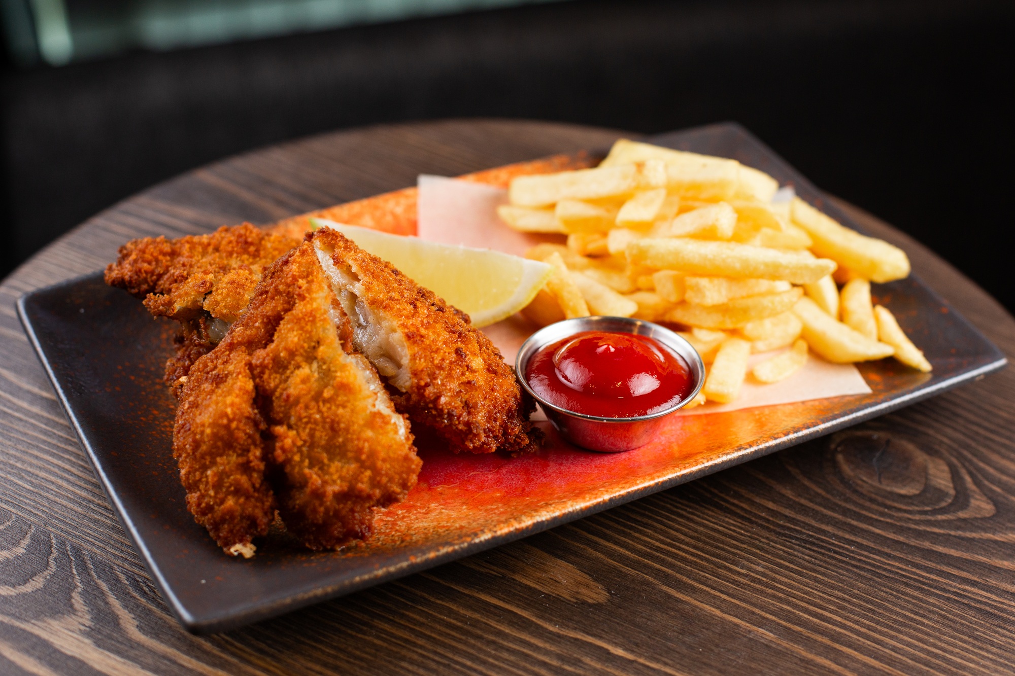 Филе минтая, картофель фри, лимон, соус тартар 160/30/15гр