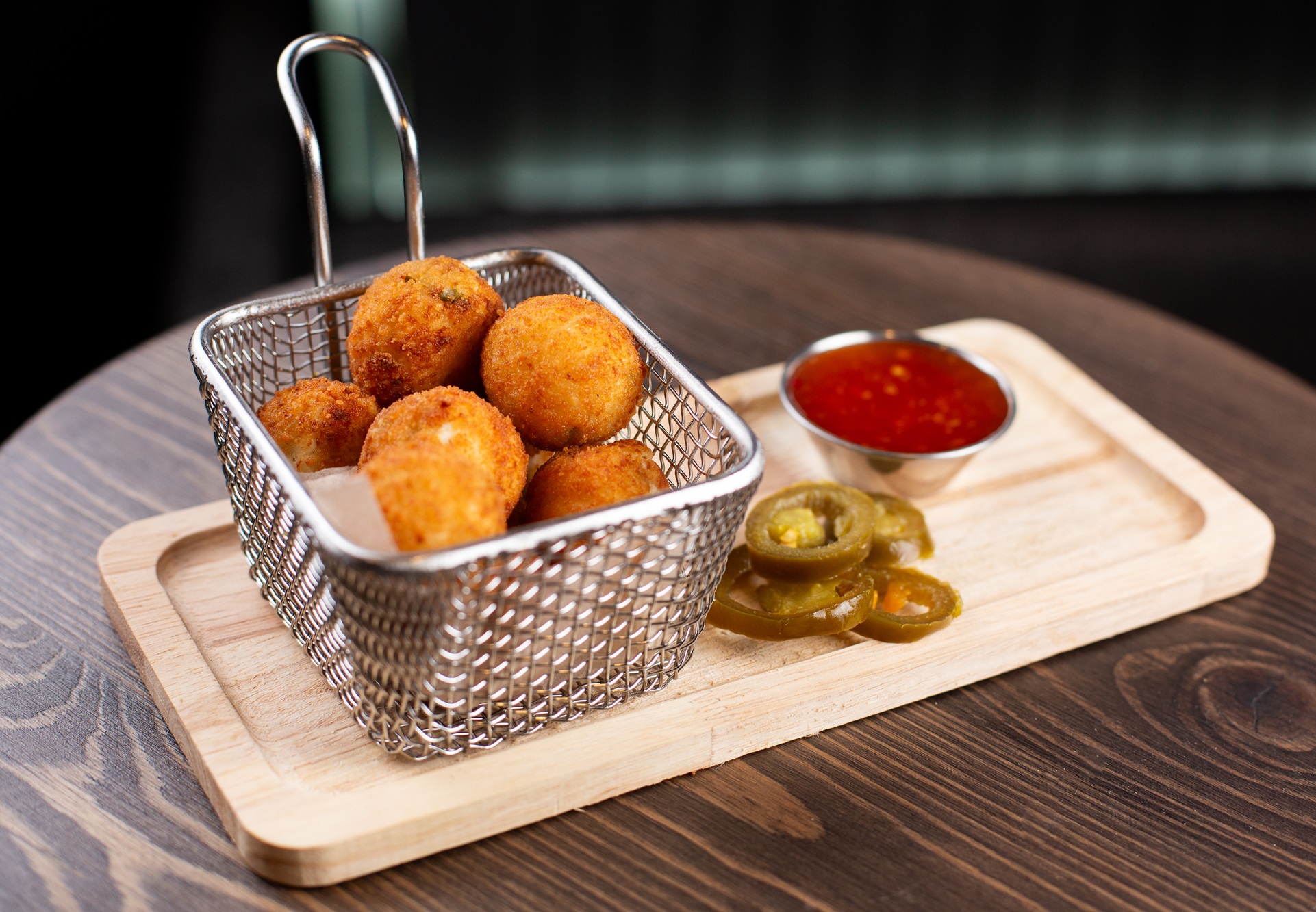 Творожный сыр, сыр чеддер, халапеньо маринованный, соус сладкий чили