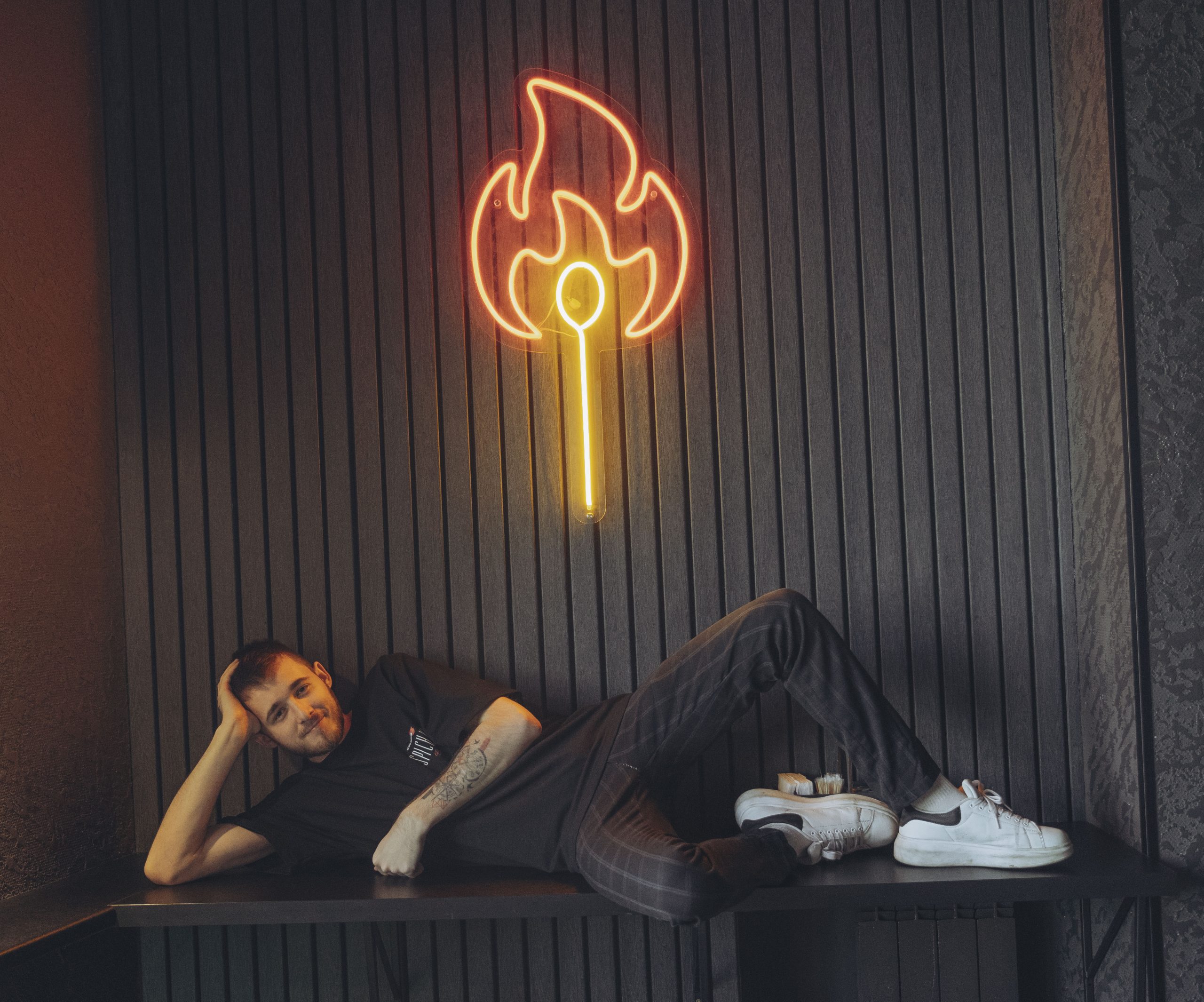 Работает в «Спичках» с мая 2025 года. Стаж работы в общепите 7 лет. Родом из города Несвиж. Работал в таких заведениях как: кафе «Старое время». Психологический возраст — 46 лет. С «душностью» Максима не справляются даже два кондиционера установленных в заведении.