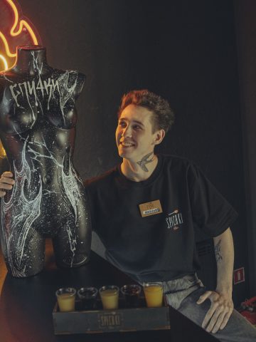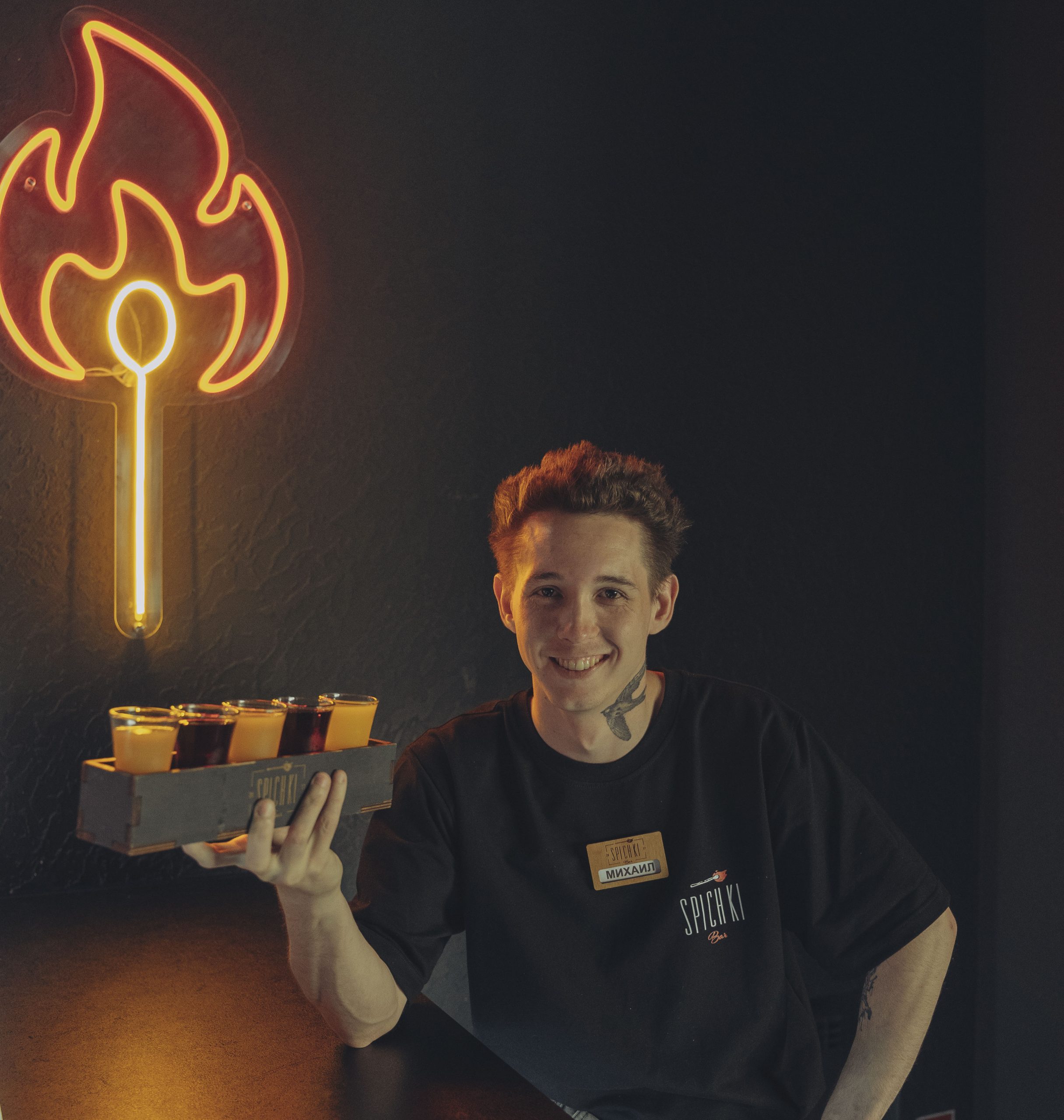 Работает в «Спичках» со дня открытия заведения. Стаж в общепите 5 лет. Имеется опыт работы официантом. Приехал из России, что бы работать в «Спичках». Работал в таких заведениях как: ресторан «Хинкальня», ресторан «Адажио». Пришёл в общепит, что бы найти себе заботливую и богатую мамочку, которая заберет его и сделает счастливым.